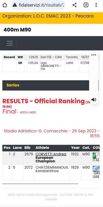 Ο Κωνσταντίνος Χατζηεμμανουήλ κατέκτησε το Ασημένιο Μετάλλιο στα 400μ στο Πανευρωπαϊκό Πρωτάθλημα στίβου Μάστερς PESCARA 2023