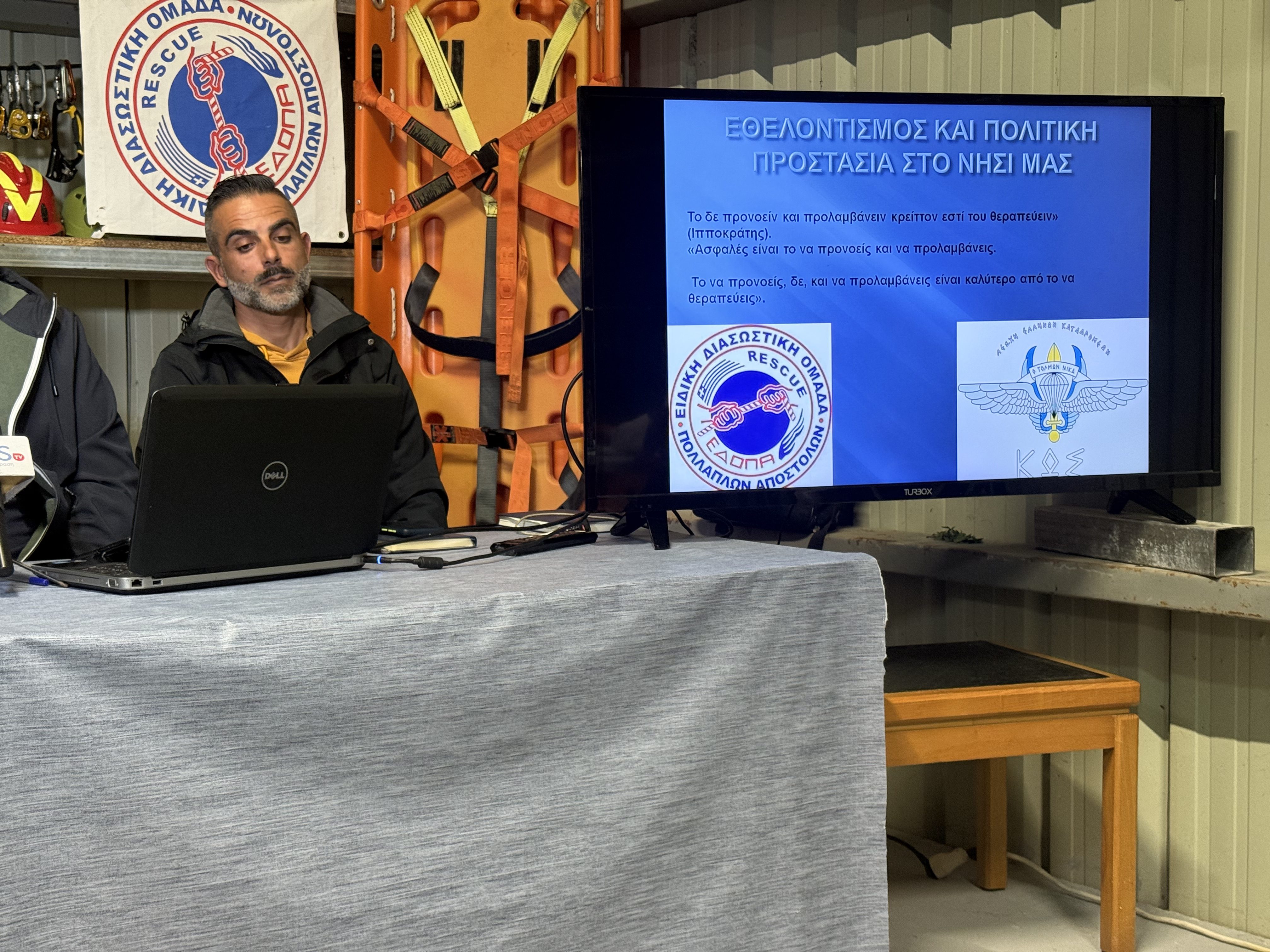 Κατά τη διάρκεια της τοποθέτησής του, ο κ. Τριανταφυλλίδης υπογράμμισε τη σημασία του εθελοντισμού, αναδεικνύοντας τη συμβολή της Λέσχης σε ζητήματα ασφάλειας και πρόληψης φυσικών καταστροφών στο νησί. Έδωσε ιδιαίτερη έμφαση στο σχέδιο εκκένωσης του γραφικού χωριού της Ζιάς σε περίπτωση πυρκαγιάς, τονίζοντας τη σημασία της πρόληψης και της σωστής προετοιμασίας σε τέτοιες κρίσιμες περιστάσεις.