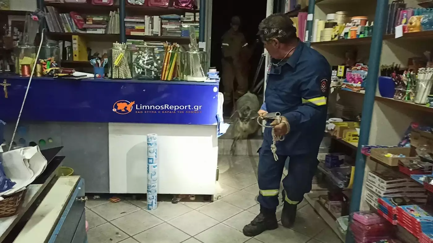 Χαμός επικράτησε το βράδυ της Τρίτης (01.08.2023) στην κεντρική αγορά της Μύρινας, στη Λήμνο, όταν τράγος εγκλωβίστηκε στην αυλή βιβλιοπωλείου.