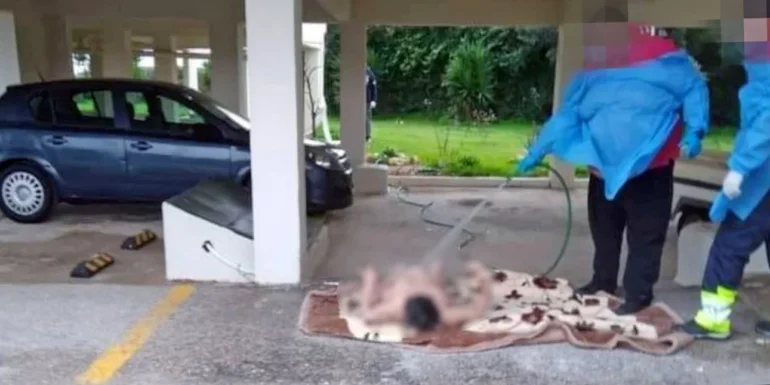 Σοκ αλλά και έντονες αντιδράσεις έχει προκαλέσει η εικόνα που είδε το φως της δημοσιότητας από τον Ωρωπό όπου πλήρωμα δημοτικού ασθενοφόρου πλένει με λάστιχο σε πιλοτή πολυκατοικίας μια ηλικιωμένη γυναίκα, η οποία είναι γυμνή, ξαπλωμένη σε μια κουβέρτα.