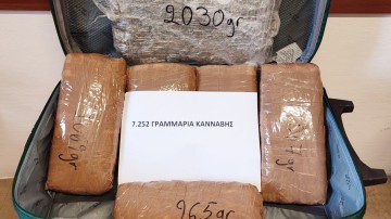 Σε έλεγχο που του έγινε, βρέθηκε μέσα στη βαλίτσα του, ποσότητα κάνναβης βάρους 7 κιλών και 252 γραμμαρίων.