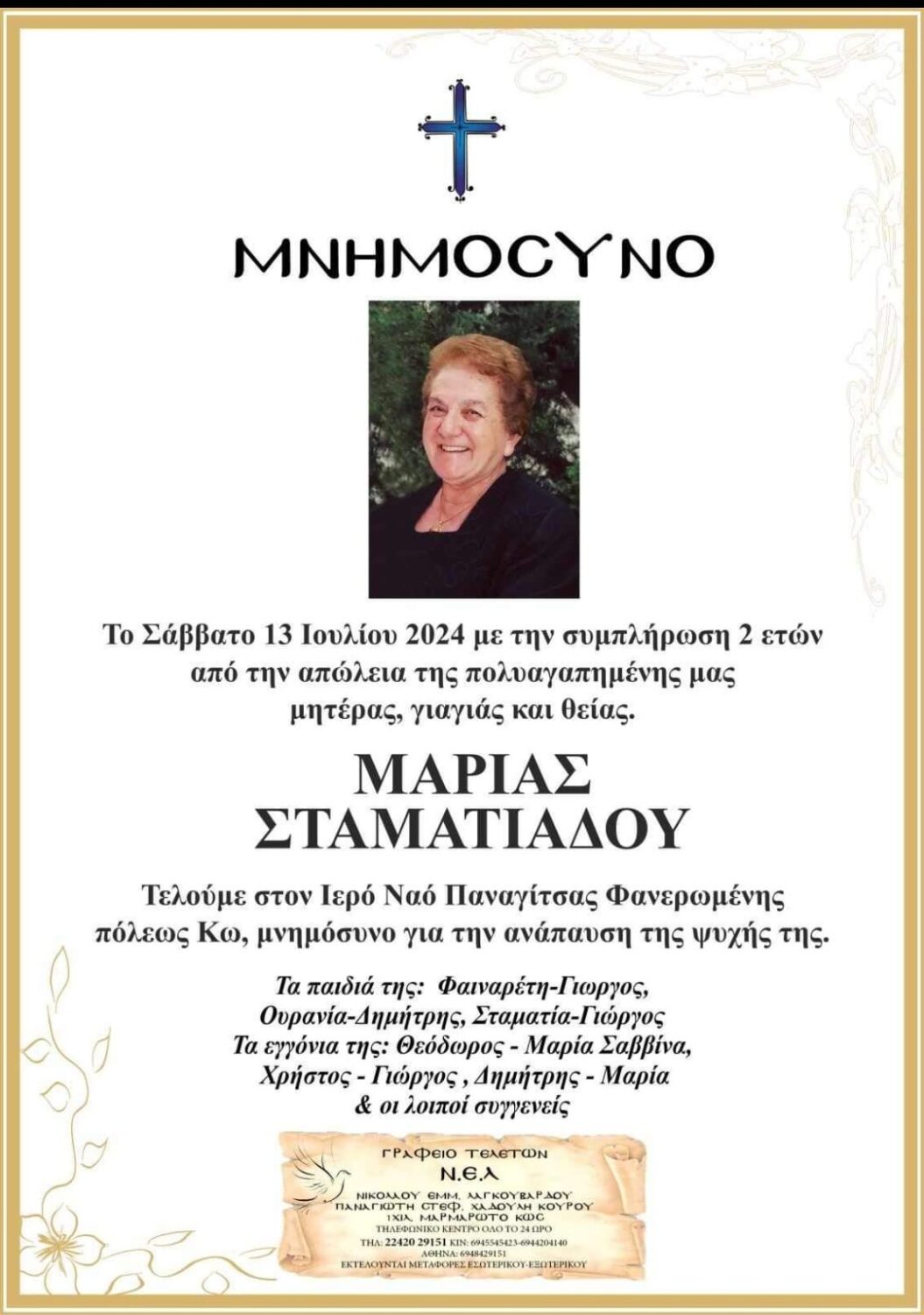 Μνημόσυνο 2 ετών της Μαρίας Σταματιάδου