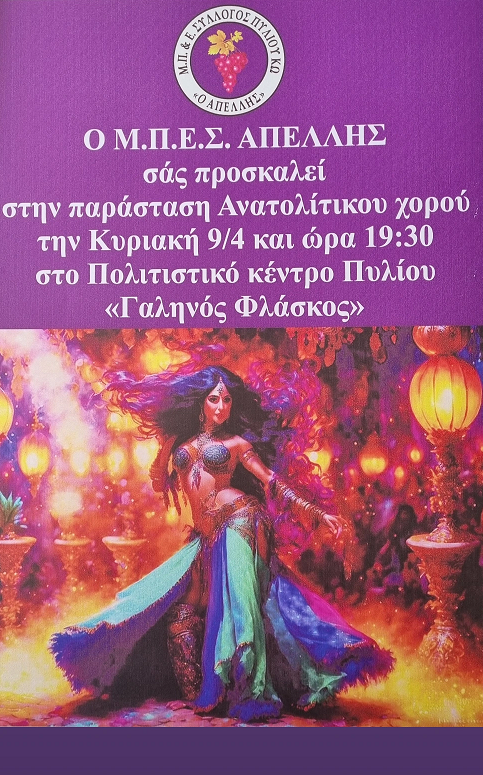 Μ.Π.Σ ΑΠΕΛΛΗΣ: Ανατολίτικη παράσταση χορού, στο Πολιτιστικό Πυλίου «Γαληνός Φλάσκος»