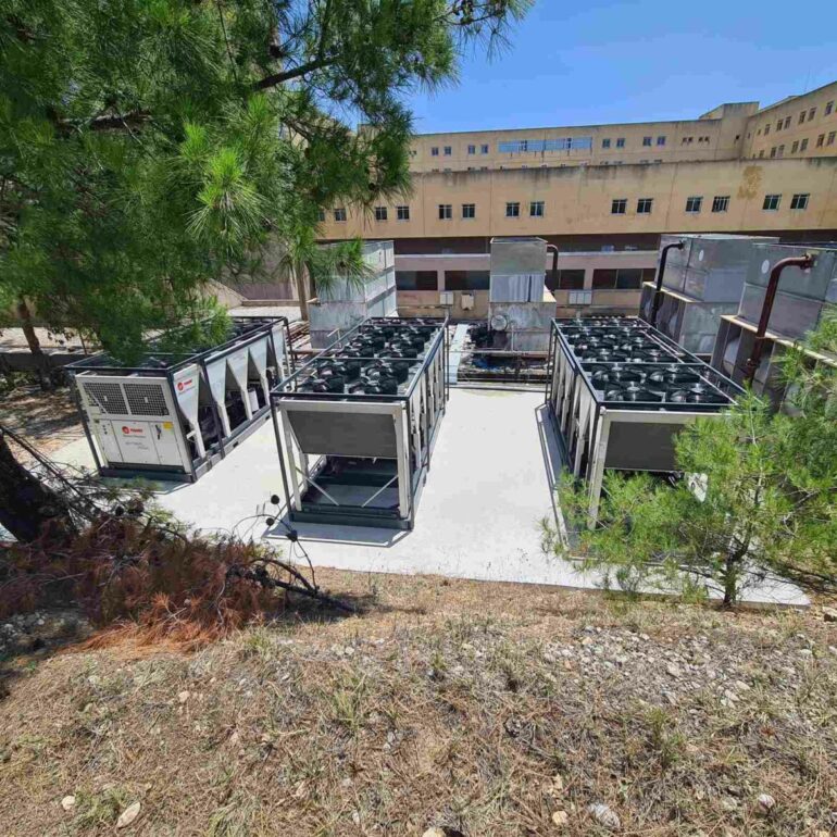Σε αναμονή υλοποίησης της Πράξης «Δράσεις Ενεργειακής Αναβάθμισης, εξοικονόμησης ενέργειας και αξιοποίησης ΑΠΕ του Γενικού Νοσοκομείου Ρόδου ‘Ανδρέας Παπανδρέου’» συνολικού προϋπολογισμού 4.450.000€ από την Περιφέρεια Ν. Αιγαίου παρελήφθησαντα τρία αερόψυκτα μηχανήματα τα οποία μισθώθηκαν για να καλύψουν τις ανάγκες κλιματισμού του νοσοκομείουκατά τους θερινούς μήνες.