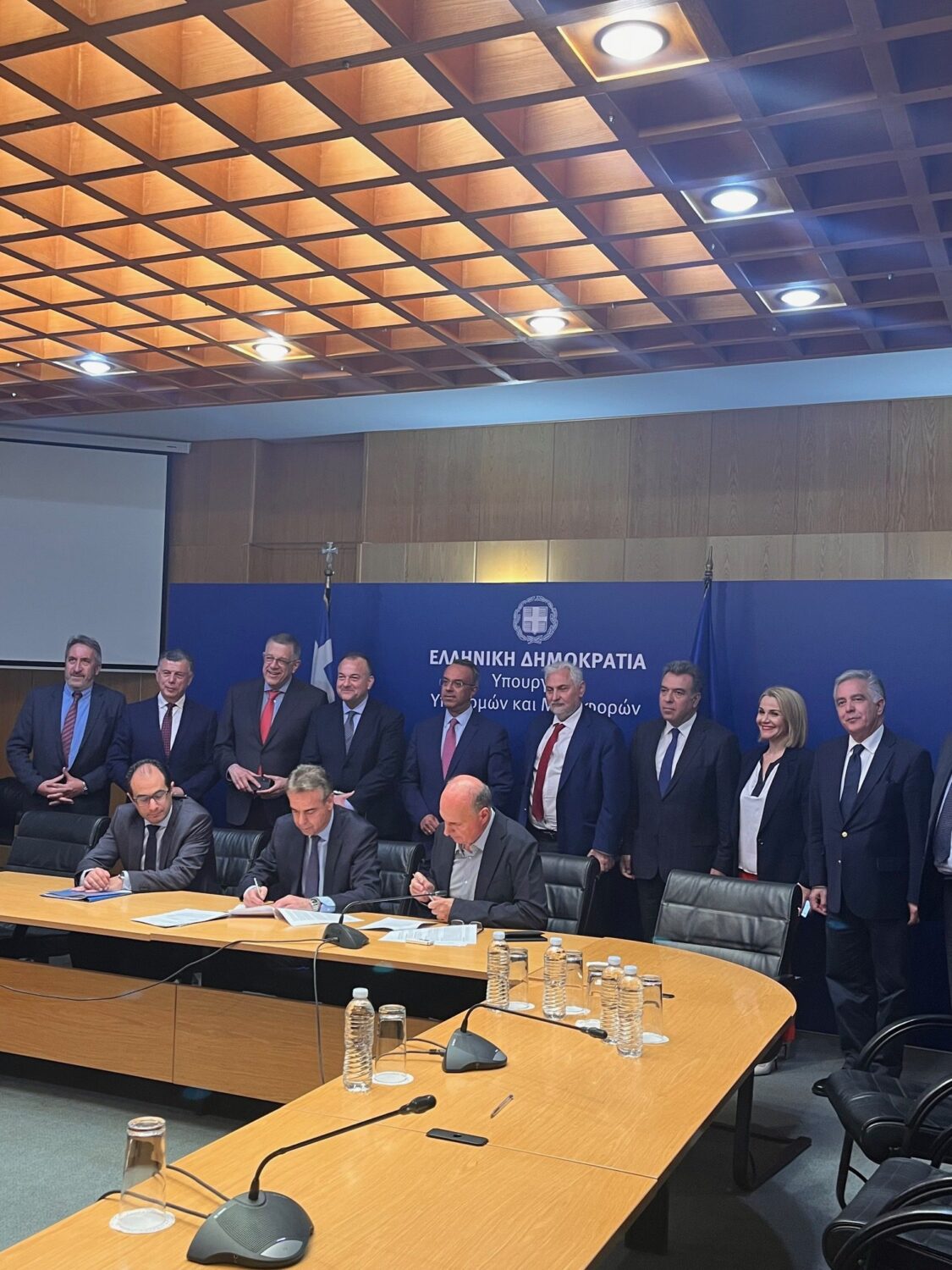 Στην τελετή υπογραφής της σύμβασης, με τον ανάδοχο του έργου «Μελέτη – Κατασκευή Νέου Δικαστικού Μεγάρου Κω» προϋπολογισμού 3.3 εκ. €, σήμερα Τρίτη 9 Απριλίου, στο Υπουργείο Υποδομών και Μεταφορών, παρέστη ο Δήμαρχος Θεοδόσης Νικηταράς, με τον Πρόεδρο του Δικηγορικού Συλλόγου Μανόλη Χατζηάμαλλο και τον πρώην Πρόεδρο του Δικηγορικού Συλλόγου Παναγιώτη Αβρίθη.