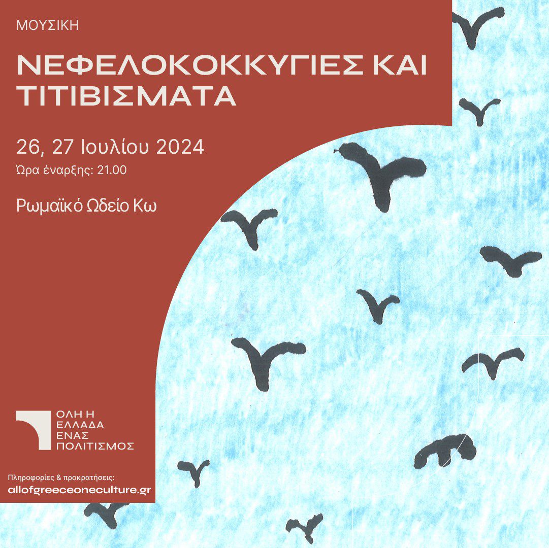 Στο πλαίσιο των εκδηλώσεων που διοργανώνει το ΥΠΟΥΡΓΕΙΟ ΠΟΛΙΤΙΣΜΟΥ με τίτλο ΟΛΗ Η ΕΛΛΑΔΑ ΕΝΑΣ ΠΟΛΙΤΙΣΜΟΣ παρουσιάζεται στο Ρωμαϊκό Ωδείο Κω στις 26 & 27 Ιουλίου 2024 και ώρα 21:00, η μουσική παράσταση «ΝΕΦΕΛΟΛΟΚΚΥΓΙΕΣ ΚΑΙ ΤΙΤΙΒΙΣΜΑΤΑ».