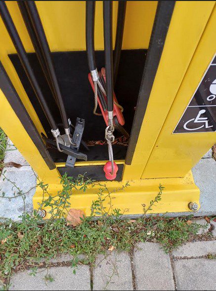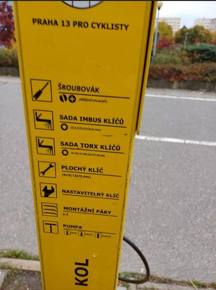 Με αφορμή αυτό σας δείχνω για προβληματισμό και αξιοποίηση κάποιες φωτογραφίες από την Πράγα, όπου έχουν τοποθετηθεί σταθμοί βοήθειας όχι μόνο για ποδήλατα αλλά για αναπηρικά αμαξίδια και βρεφικά καρότσια σε κατά τόπους σημεία με όλα τα απαραίτητα εργαλεία και εξοπλισμό.