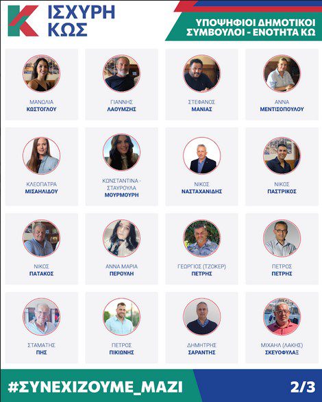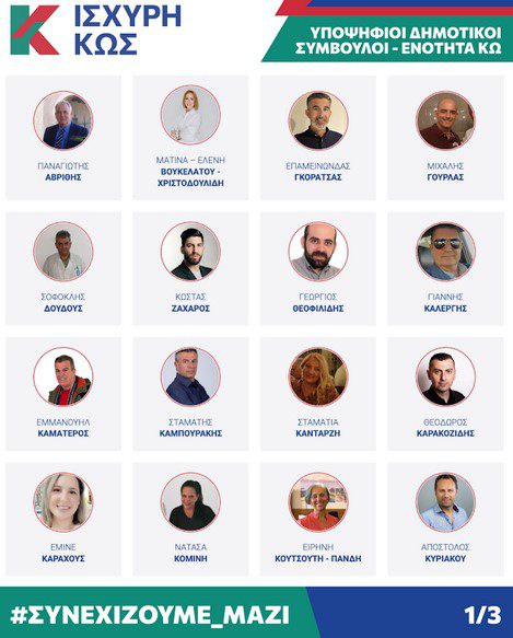 Δίνουμε στη δημοσιότητα τα ονόματα των υποψήφιων Δημοτικών Συμβούλων της «ΙΣΧΥΡΗ ΚΩΣ» για τη Δημοτική Ενότητα Κω, όπως κατατέθηκαν στο Πρωτοδικείο.