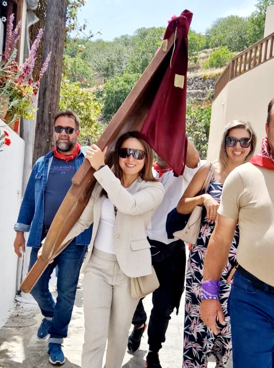 Τη συνοδεύει ο Σεβασμιώτατος ο ηγούμενος της Ιεράς Μονής Παναγίας Σπηλιανής και άλλοι ιερείς. Ταυτόχρονα λιτανεύονται και οι άλλες εικόνες του νησιού.