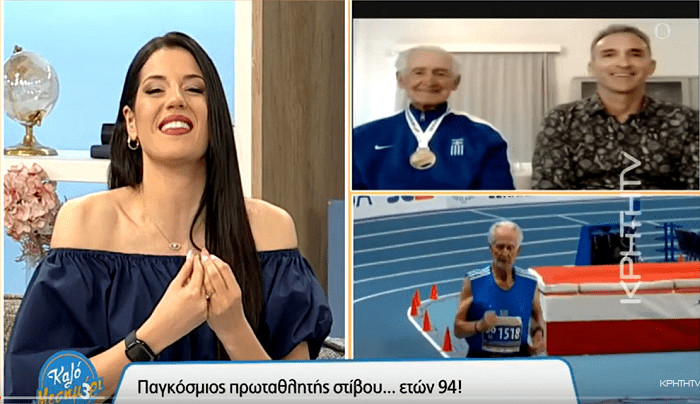 Share Facebook Twitter LinkedIn Pinterest Email Δείτε το βίντεο “Παγκόσμιος πρωταθλητής στίβου… ετών 94!”Στην εκπομπή ΚΑΛΟ ΜΕΣΗΜΈΡΙ στο ΚΡΉΤΗ TV Χατζηεμμανουήλ Κωνσταντίνος
