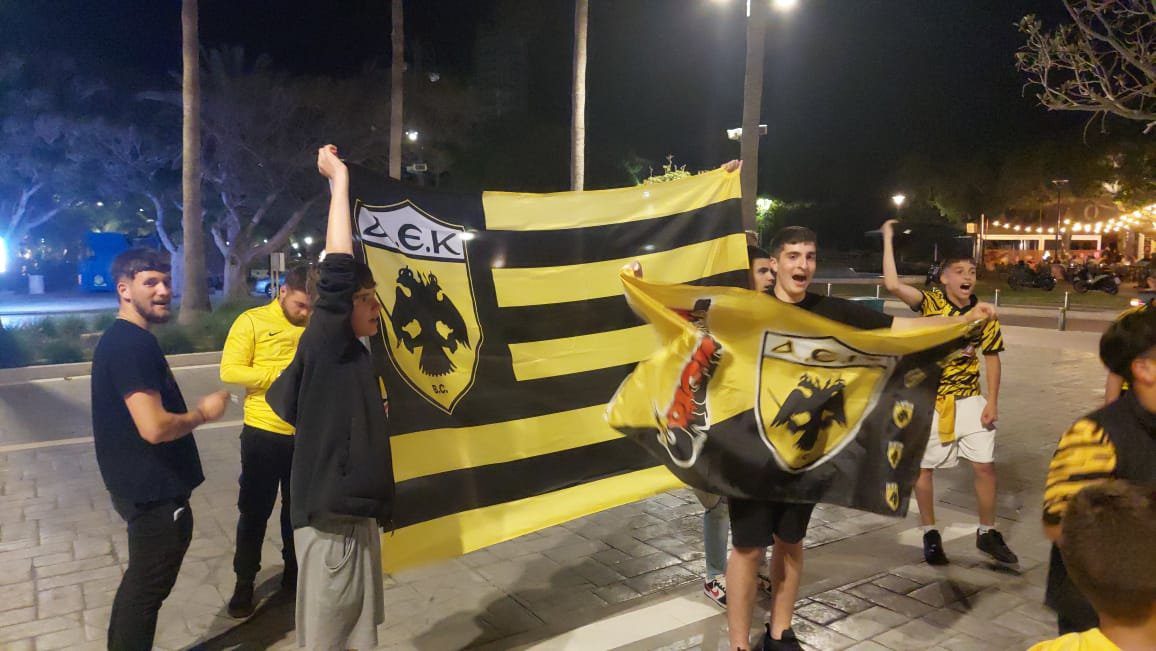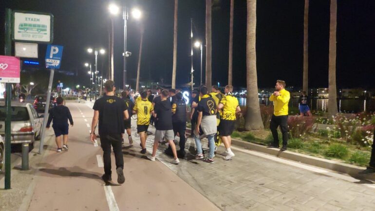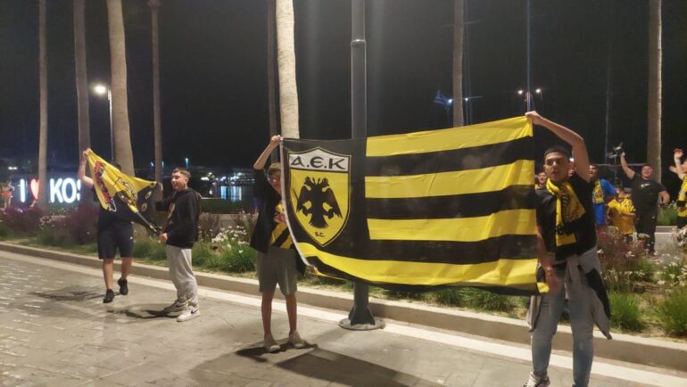 Share Facebook Twitter LinkedIn Pinterest Email Σε κεντρικούς δρόμους της Κω και το λιμάνι με συνθήματα καπνογόνα και βεγγαλικά. ΑΕΚ