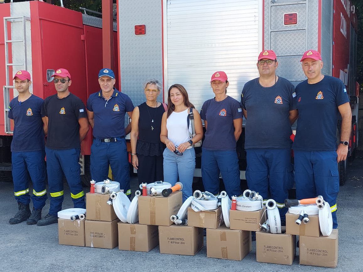 Σε μια ακόμη σημαντική κίνηση προχώρησε η Ένωση ξενοδόχων Κω με την παρουσία της προέδρου Κων/νας Σβύνου και της αντιπροέδρου Μαίρης Τριανταφυλλοπούλου οι οποίες παρέδωσαν τον εξοπλισμό στον διοικητή της υπηρεσίας Κω Γρηγόρη Μαυρίδη. Ο διοικητής ευχαρίστησε την Ένωση και την πρόεδρο για την διαχρονική προσφορά στην κάλυψη αναγκών πυρόσβεσης της υπηρεσίας αλλά και άλλων ζητημάτων από τους ξενοδόχους της Κω.