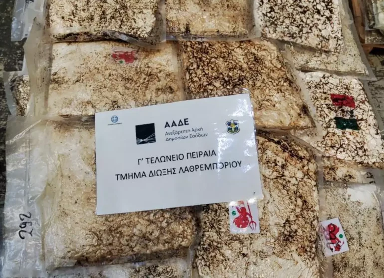 Φορτίο μαμούθ με κοκαΐνη εντόπισαν και κατέσχεσαν οι τελωνειακοί ελεγκτές της Ανεξάρτητης Αρχής Δημοσίων Εσόδων στο λιμάνι του Πειραιά.