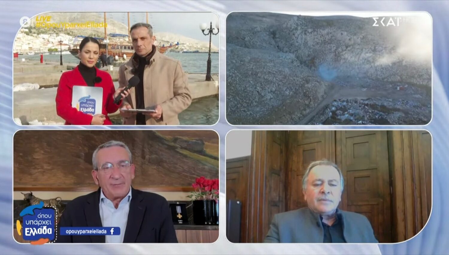 Σταθμός της εκπομπής του ΣΚΑΪ, “Όπου Υπάρχει Ελλάδα” με την Ευλαμπία Ρέβη και τον Γιώργο Κουρδή, μετά την Κω, ήταν η Κάλυμνος, όπου και αναδείχθηκε ένα από τα σοβαρότερα περιβαλλοντικά προβλήματα που αντιμετωπίζει το νησί, η χρόνια ανεξέλεγκτη καύση απορριμμάτων. Κατά την άφιξη του τηλεοπτικού συνεργείου στο λιμάνι της Καλύμνου, η εικόνα της πυρκαγιάς στον σκουπιδότοπο και η έντονη οσμή από την καύση των απορριμμάτων προκάλεσαν αίσθηση, αποκαλύπτοντας την κρισιμότητα της κατάστασης.