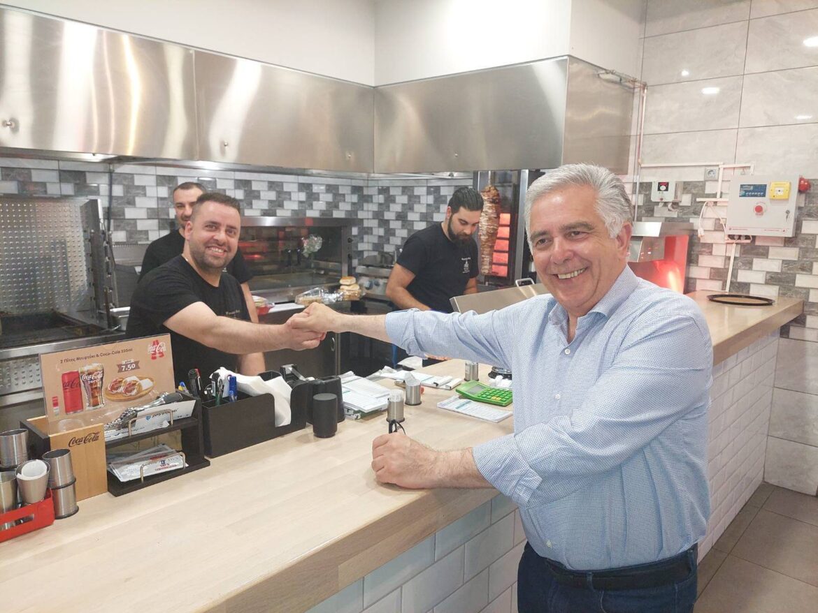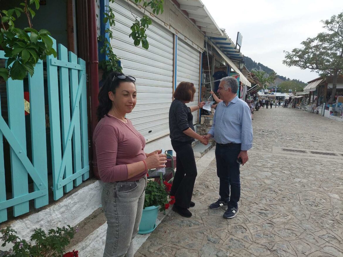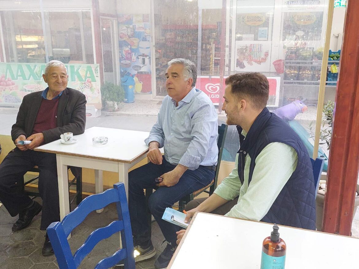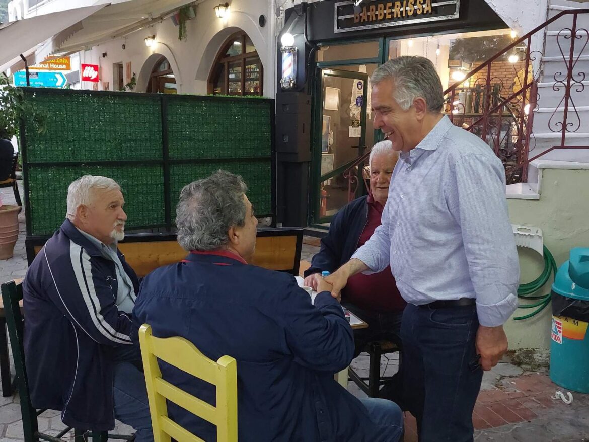 Σήμερα θα βρεθεί στα υπόλοιπα χωριά και στην πόλη και στις 20:00 θα πραγματοποιηθούν τα εγκαίνια του εκλογικού κέντρου του, επί της οδού Αρτεμισίας.
