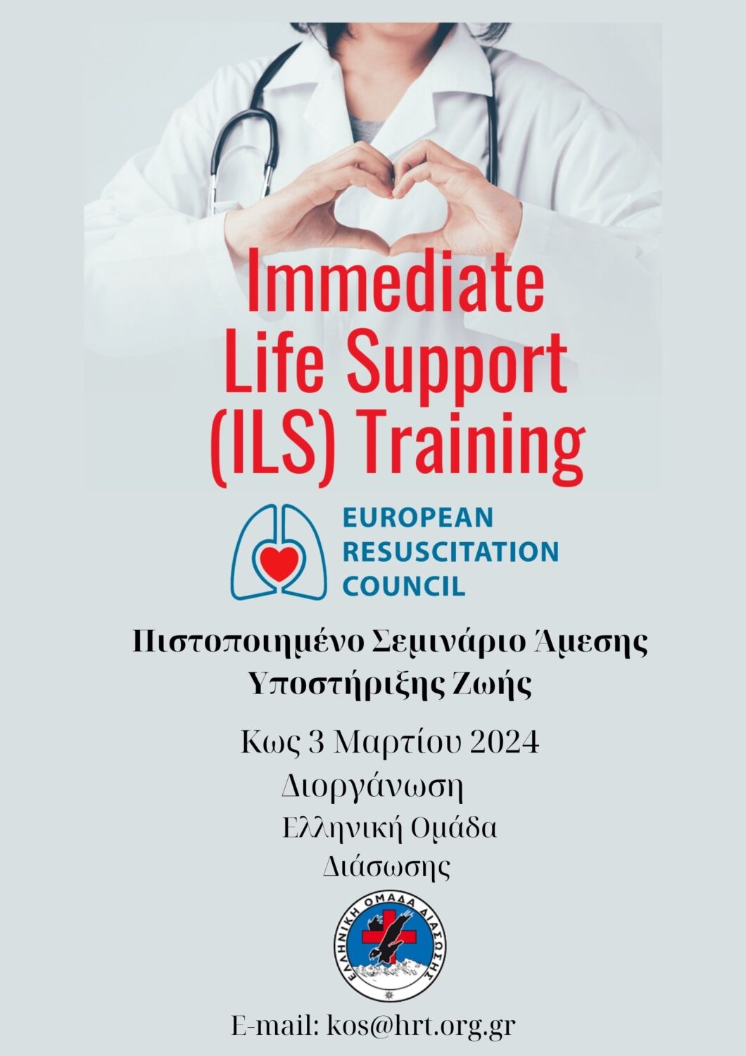 Στα πλαίσια της συνεχούς εκπαίδευσης και πιστοποίησης των μελών η Ελληνική Ομάδα Διάσωσης παράρτημα Βορείου Συγκροτήματος Δωδεκανήσου (ΕΟΔ ΒΣΔ) διοργανώνει πιστοποιημένη εκπαίδευση ILS (IMMEDIATE LIFE SUPPORT) με φορέα πιστοποίησης το ERC.