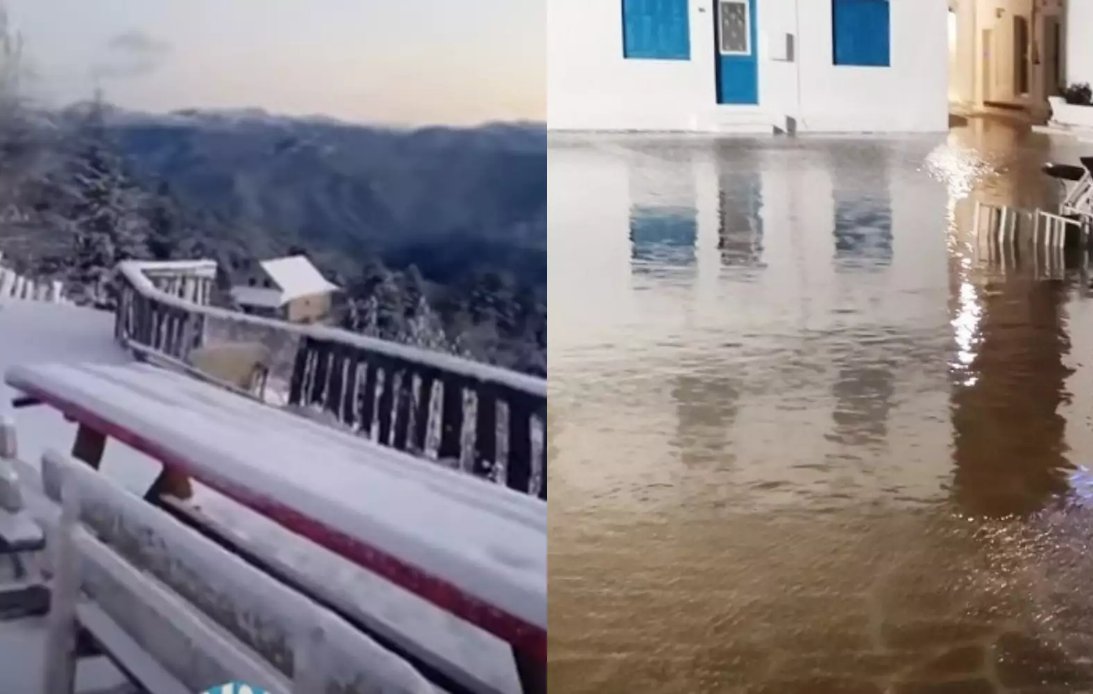 Στην Μύκονο πλημμύρισαν δρόμοι, με την Μικρή Βενετία να γίνεται… κανονική Βενετία.