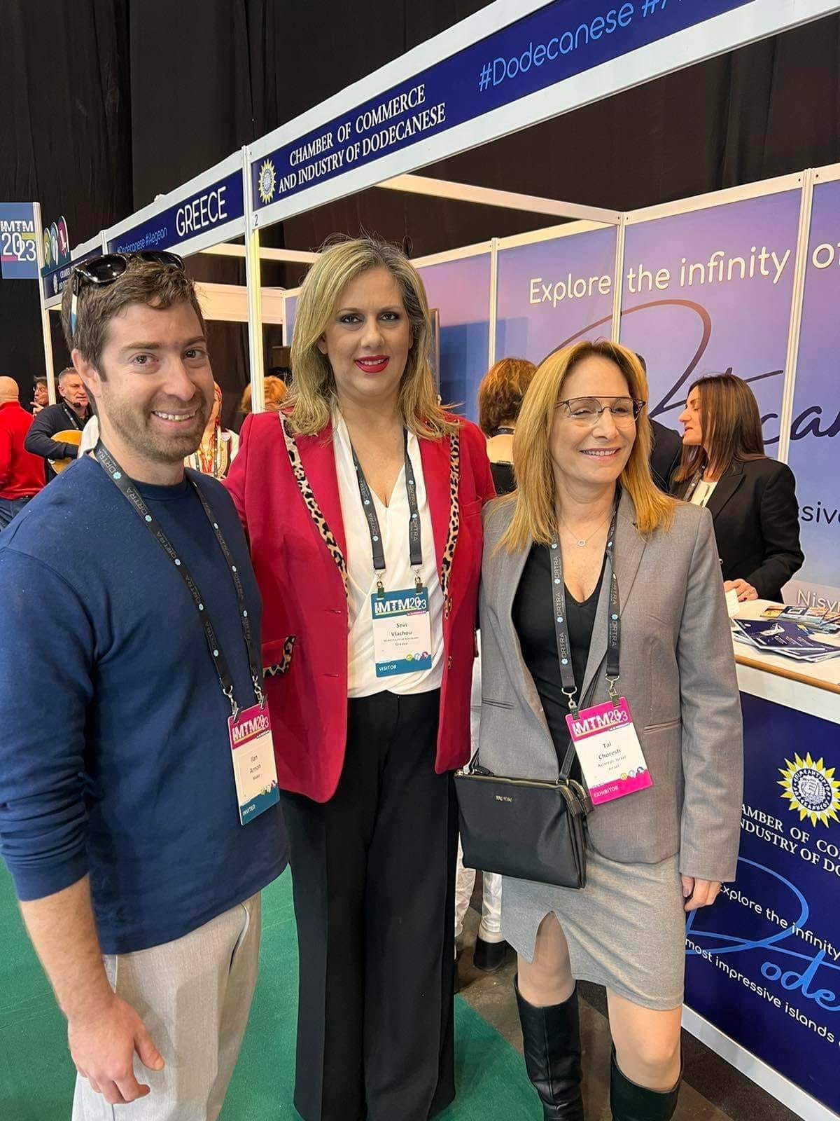 Share Facebook Twitter LinkedIn Pinterest Email Πλούσια και παραγωγική η πρώτη μέρα της παρουσίας του Δήμου Κω #visitkosgreece στην 29η Διεθνή Μεσογειακή Έκθεση Τουρισμού στο Τελ Αβίβ του Ισραήλ με 1760 εκθέτες, από 52 χώρες και 25.800 επισκέπτες. Από το προφίλ της κας. Βλάχου Διεθνής Τουριστική Έκθεση