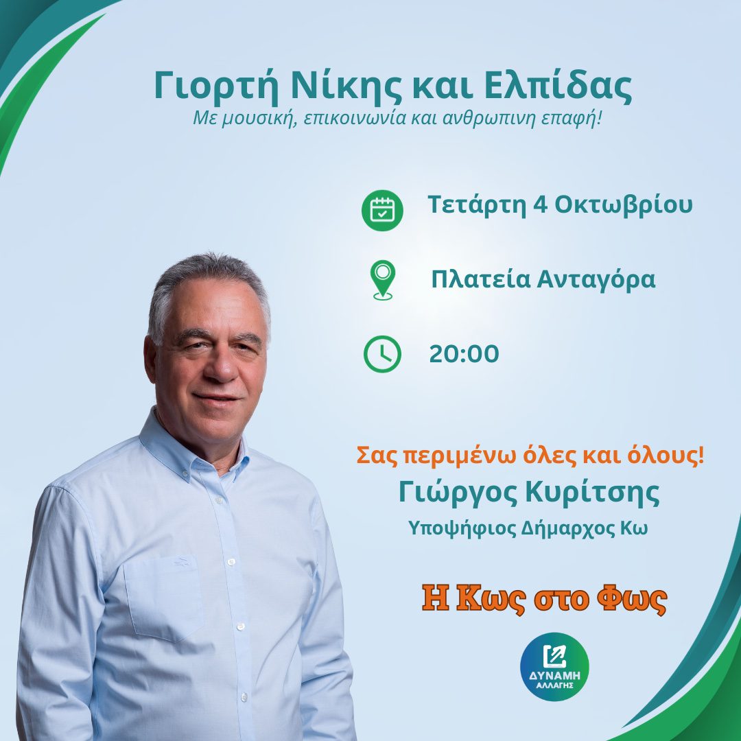 Share Facebook Twitter LinkedIn Pinterest Email Σας περιμένουμε με χαρά στην εκδήλωση μας αύριο Τετάρτη 04/10 και ώρα 20.00 στην πλατεία Ανταγόρα. Δύναμη Αλλαγής