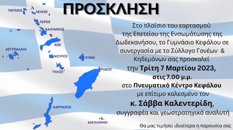 ΠΡΟΣΚΛΗΣΗ στη γιορτή της 7ης Μαρτίου του Γυμνασίου Κεφάλου
