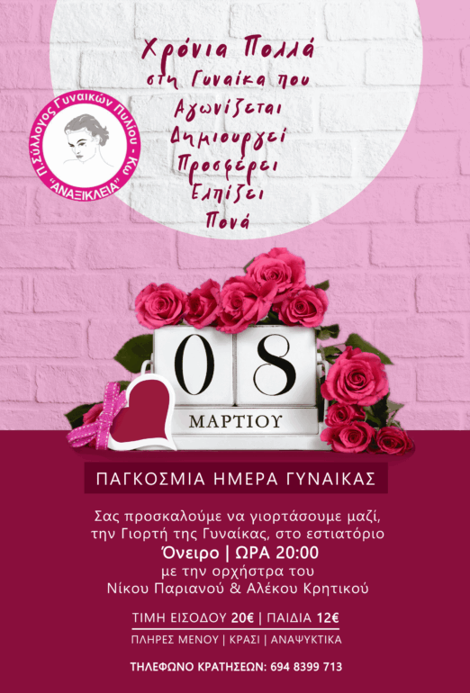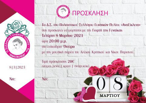 Πρόσκληση για την χοροεσπερίδα της “Αναξίκλειας” προς τιμήν της Γυναίκας στις 8 Μαρτίου