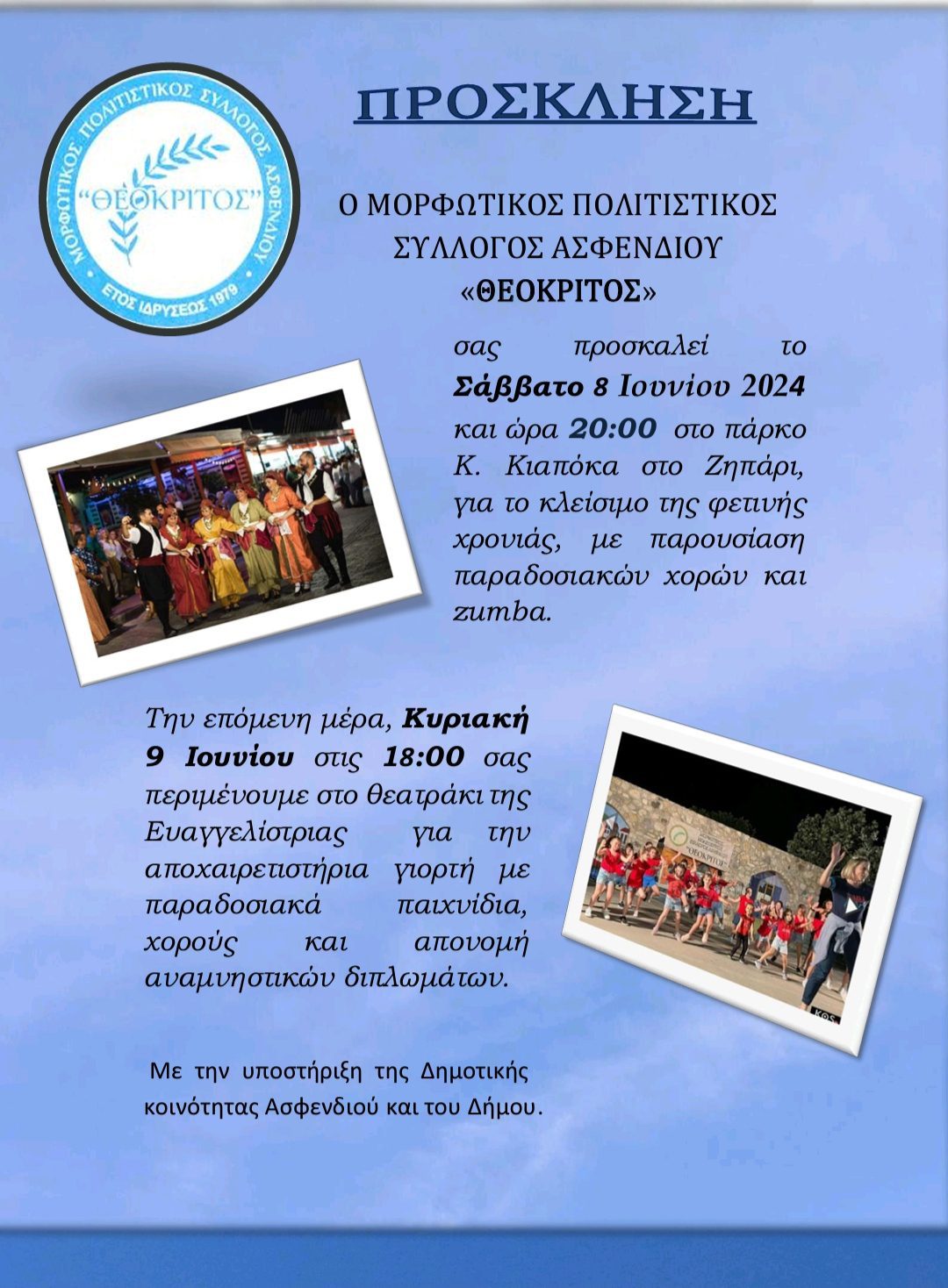 Πρόσκληση εκδηλώσεων Μ.Π.Σ.Α. “ΘΕΟΚΡΙΤΟΣ”