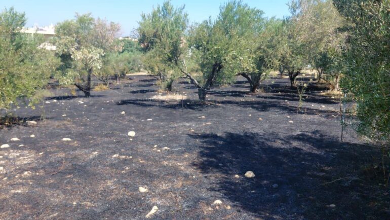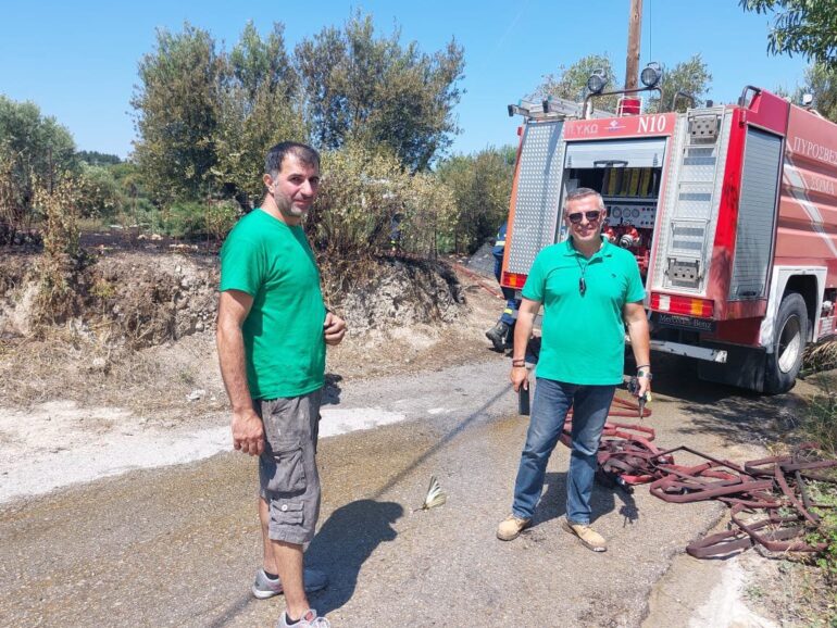 Share Facebook Twitter LinkedIn Pinterest Email Άμεση ήταν η επέμβαση της Πυροσβεστικής και της πολιτικής προστασίας με αποτέλεσμα να περιοριστεί η φωτιά σε ελαιώνα της περιοχής και χωρίς να επεκταθεί σε παρακείμενη οικία. Πυρκαγιά