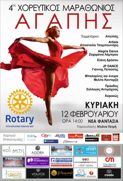 Share Facebook Twitter LinkedIn Pinterest Email Ροταριανός Όμιλος Κω: Την Κυριακή 12 Φεβρουαρίου ο 4ος Χορευτικός Μαραθώνιος Αγάπης Ροταριανός Όμιλος Κω
