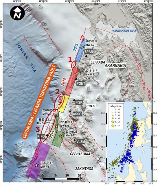 Η μελέτη των ρηγμάτων στο νησί της Λευκάδας και η αξιολόγηση των επιπτώσεων των παλαιότερων ισχυρών σεισμών καθώς και του σεισμού του 2003, έδειξε ότι ως σημαντικότερο ενεργό ρήγμα μπορεί να θεωρηθεί το δεξιόστροφο ρήγμα οριζόντιας ολίσθησης Αγίου Νικήτα – Αθανίου, το οποίο έχει διεύθυνση ΒΒΑ-ΝΝ∆, παράλληλη σχεδόν με τη δυτική ακτογραμμή. Το ρήγμα αυτό έχει παρόμοια γεωμετρικά και δυναμικά χαρακτηριστικά με το υποθαλάσσιο ρήγμα Κεφαλονιάς-Λευκάδας, το οποίο βρίσκεται σε απόσταση μερικών χιλιομέτρων από τις απότομες ακτές, η διαμόρφωση των οποίων δεν συνδέεται με την ύπαρξη κανονικού ρήγματος, αλλά με την τεκτονική ανύψωση της ξηράς, ως αποτέλεσμα της συμπίεσης που επικρατεί στην περιοχή και επακόλουθα φαινόμεναβαρύτητας.