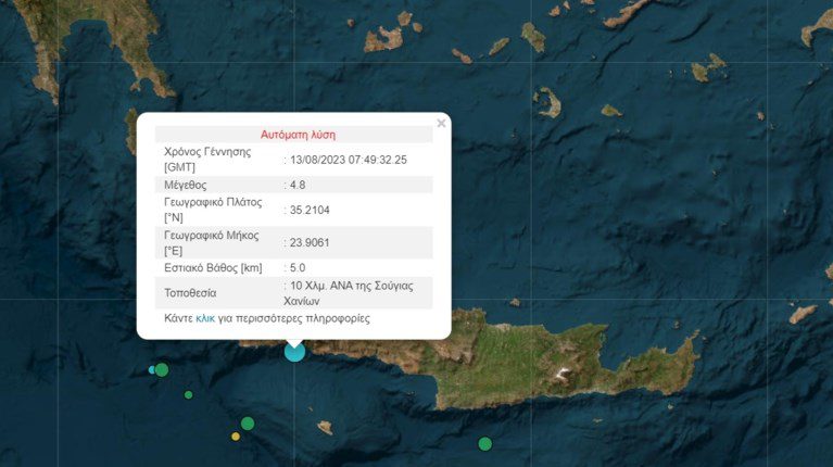 Ισχυρός σεισμός 4,8 Ρίχτερ ταρακούνησε το πρωί της Κυριακής τους κατοίκους στην Κρήτη.