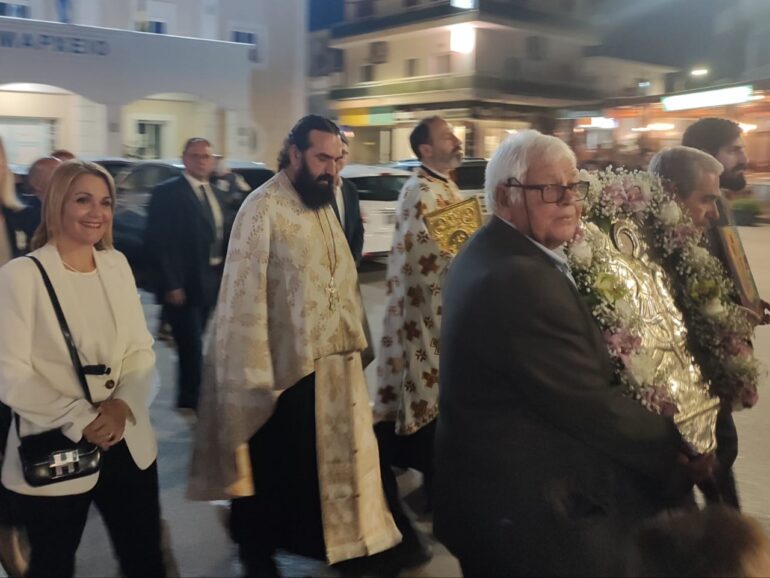 Στη συνέχεια η κ. Ιατρίδη μετέβη στον Άγιο Γεώργιο Αφάντου και παρακολούθησε τον εσπερινό και την περιφορά την εικόνας που πραγματοποιείται, όπως κάθε χρόνο, στην πλατεία του χωριού, με τη συμμετοχή πλήθους πιστών.