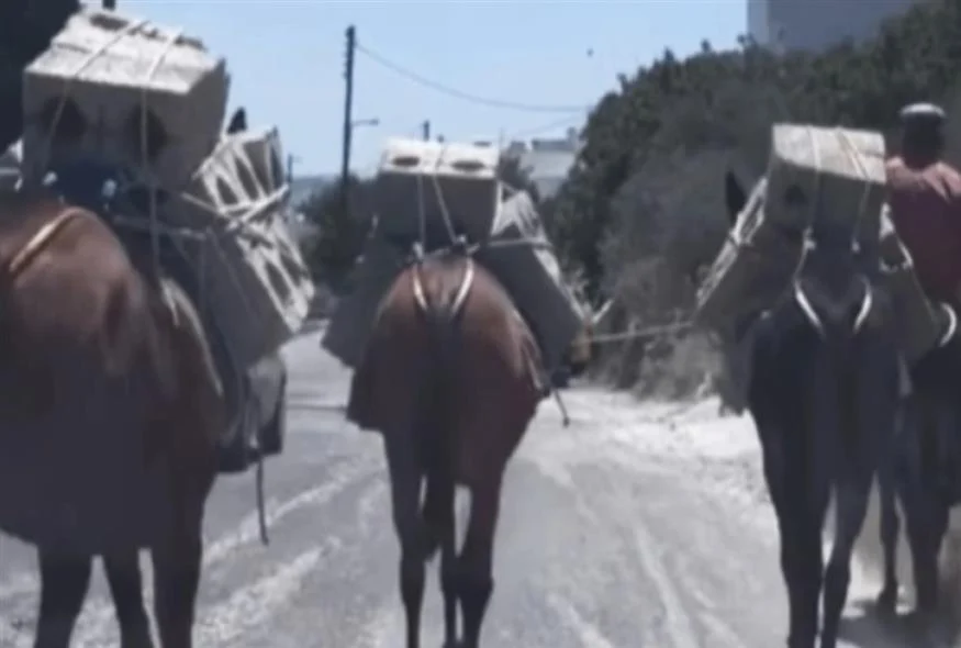 Σοβαρή καταγγελία για κακοποίηση ζώων: Μουλάρια κουβαλούν τσιμεντόλιθους μέσα στον καύσωνα στη Σαντορίνη