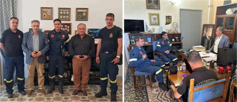 Ο Διοικητής της ΠΥ Κω συνοδευόμενος από το Διοικητή του Εθελοντικού Πυροσβεστικού σταθμού Καλύμνου Υποπυραγό ΠΣ Παναγιώτη Κωνσταντόπουλο ,πραγματοποίησε εθιμοτυπικές επισκέψεις και συναντήθηκε με τον Έπαρχο ΠΕ Καλύμνου Μανώλη Μουσελλή και με το Δήμαρχο Ιωάννη Μαστροκούκο με τους οποίους συζήτησαν και θέματα Πολιτικής Προστασίας. Στη συνάντηση με τον Έπαρχο παρών ήταν και ο Αναπληρωτής Περιφερειάρχης Απόστολος Ασπράκης,