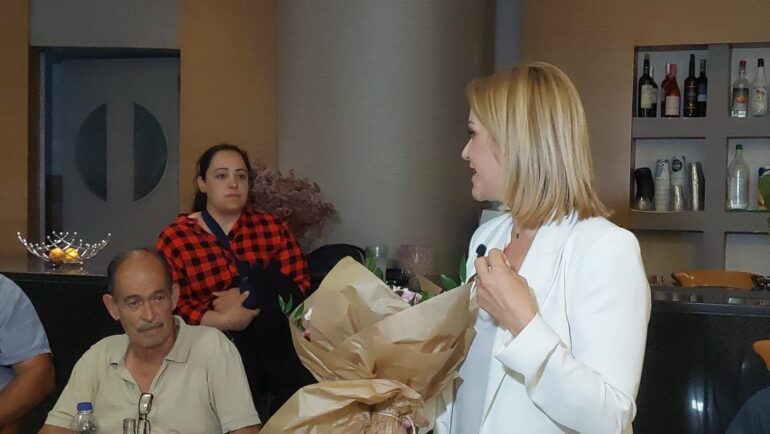 Share Facebook Twitter LinkedIn Pinterest Email Στην Κω βρέθηκε χθες η Μίκα Ιατρίδη στην αίθουσα του ξενοδοχείου Μαριτίνα. Η κα. Ιατρίδη θέλησε ν’ ευχαριστήσει τους Κωους για την στήριξη τους δίνοντας και το μήνυμα για τις εκλογές στις 25 Ιουνίου στηρίζοντας τη ΝΔ και τον Κυριάκο Μητσοτάκης. Ιατρίδη Μίκα