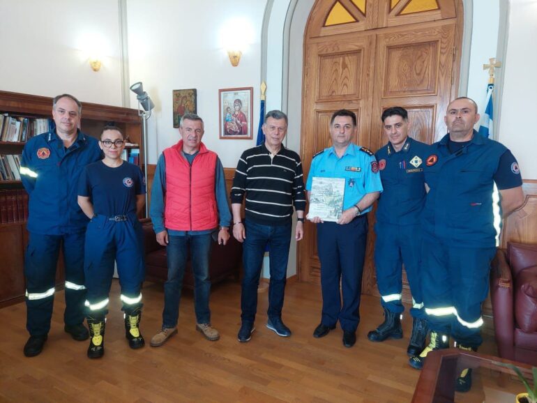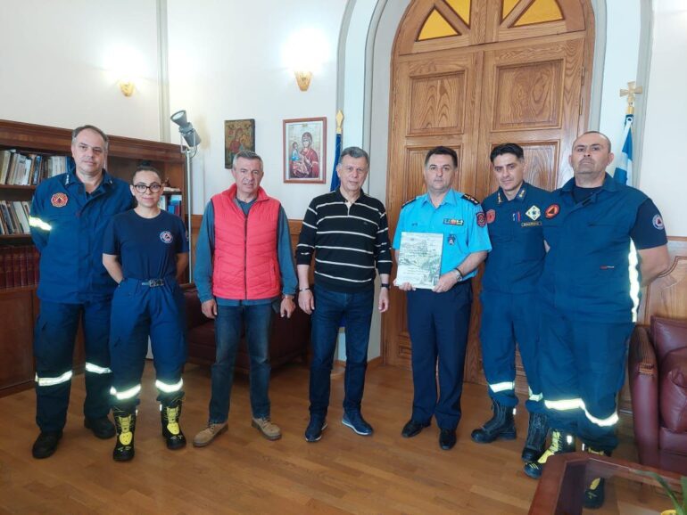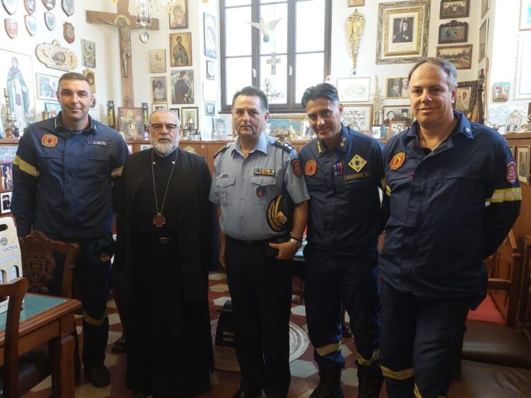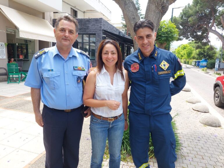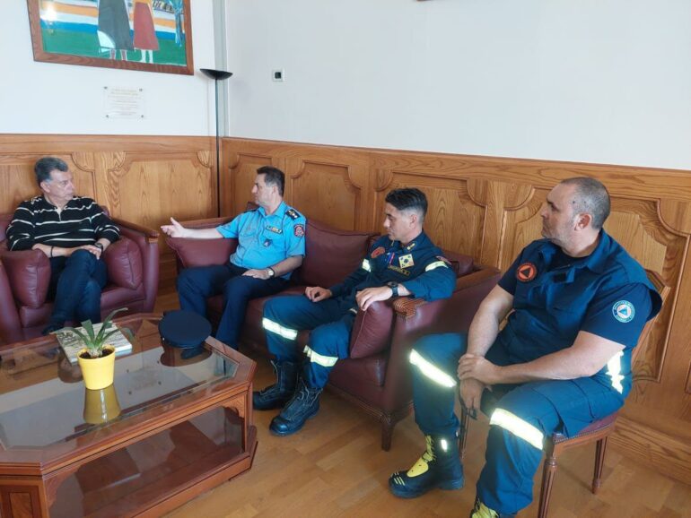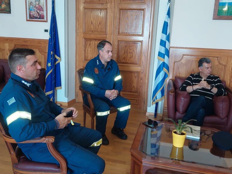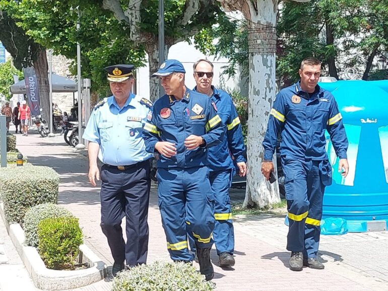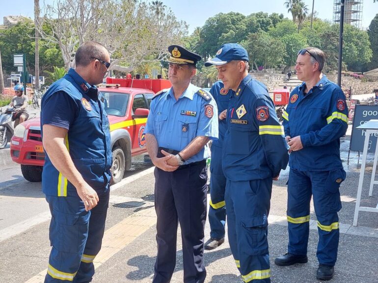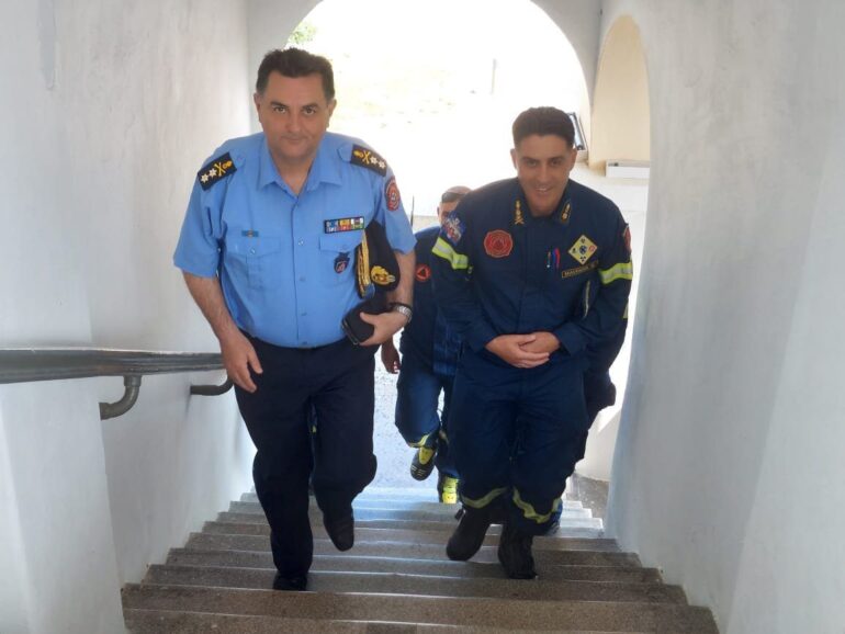Ο υποστράτηγος συνοδευόταν από τον διοικητή της Πυροσβεστικής Υπηρεσίας Κω Γρήγορη Μαυρίδη.