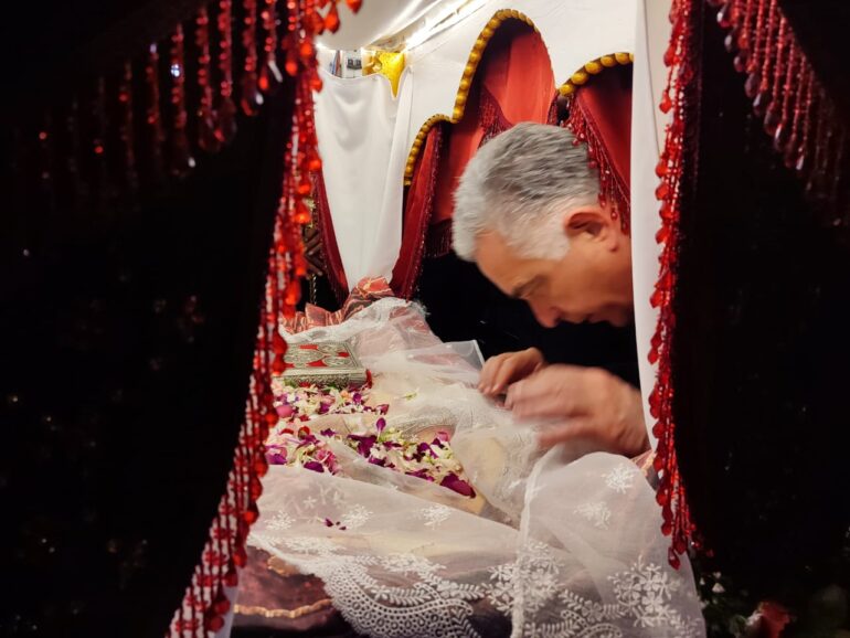 Επιστρέφοντας στη Ρόδο παρακολούθησε τα Εγκώμια και την Περιφορά του Επιταφίου στον Ευαγγελισμό της Ρόδου.