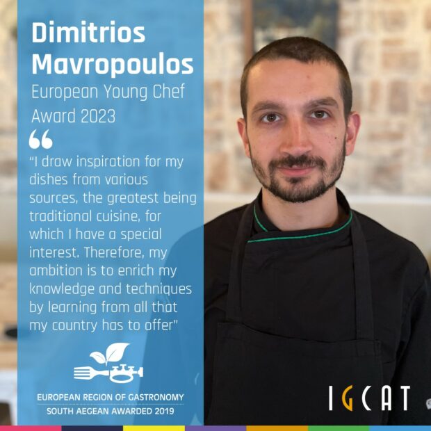Η φετινή 7η έκδοση του European Young Chef Award διοργανώνεται από το Διεθνές Ινστιτούτο Γαστρονομίας, Πολιτισμού, Τέχνης και Τουρισμού (IGCAT) και φιλοξενείται από την Hauts-de-France, Ευρωπαϊκή Περιφέρεια Γαστρονομίας για το 2023. Ο διαγωνισμός θα διεξαχθεί στο Lycée hôtelier στην πόλη Le Touquet στις 20-24 Νοεμβρίου 2023 και θα συγκεντρώσει φιναλίστ από 8 ακόμα Ευρωπαϊκές Περιφέρειες Γαστρονομίας, εκτός της Περιφέρειας Νοτίου Αιγαίου και συγκεκριμένα από την Καταλονία, βραβευμένη 2016 (Ισπανία), Κεντρική Δανία 2017 (Δανία), Σλοβενίας 2021, Μινόρκα 2022 (Ισπανία), Trondheim-Trøndelag 2022 (Νορβηγία), Hauts-de-France 2023 (Γαλλία), Saimaa 2024 (Φινλανδία) και Σικελία υποψήφια 2025 (Ιταλία).