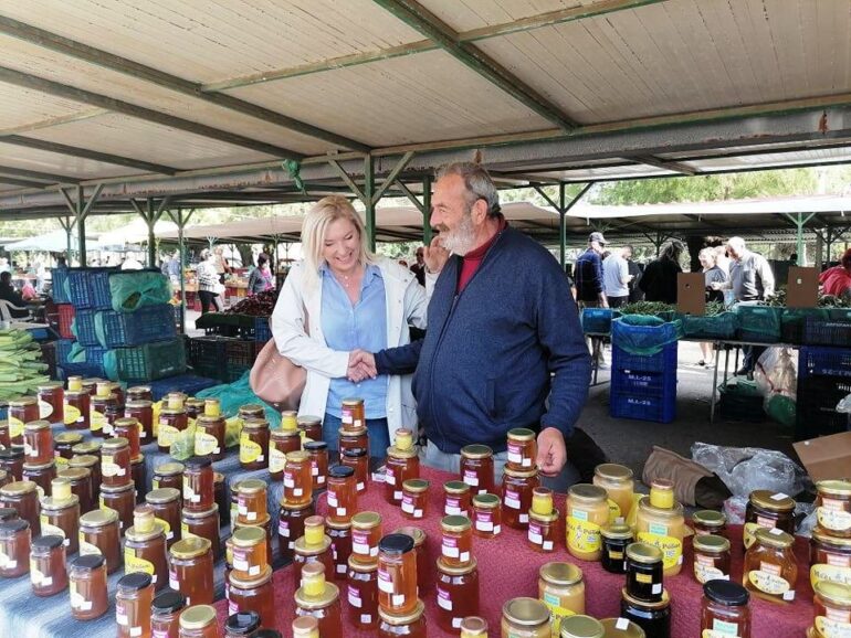 Με τους ντόπιους παραγωγούς, εμπόρους και πωλητές η κα Φτακλάκη είχε την ευκαιρία να συνομιλήσει για τα προβλήματα που αντιμετωπίζουν, όπως το κόστος παραγωγής, η διάθεση των προϊόντων, οι αυξήσεις στην ενέργεια και όλα όσα επιβαρύνουν τον προϋπολογισμό τους και χρήζουν ολοκληρωμένης αντιμετώπισης, σημειώνοντας πως οι ίδιοι προσπαθούν να κρατούν χαμηλά τις τιμές των προϊόντων τους.