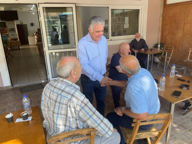 Πριν την αναχώρηση του για Κάσο και Κάρπαθο, το πρωί της Τρίτης (6.6) συναντήθηκε και συνομίλησε με κατοίκους των δημοτικών κοινοτήτων Κρεμαστής και Παστίδας συνοδευόμενος από τον πρόεδρο της ΔΗΜΤΟ Ρόδου της ΝΔ ιατρό Αντώνη Αρφαρά.