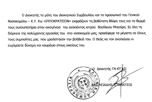 Ιδίως στη μνήμη αυτών που τον γνώρισαν ως γιατρό στο Νοσοκομείο της Κω.