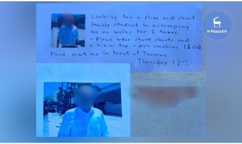 Στην «αγγελία» που ανήρτησε μπροστά από Λύκειο της Ρόδου, ο αλλοδαπός έγραφε: