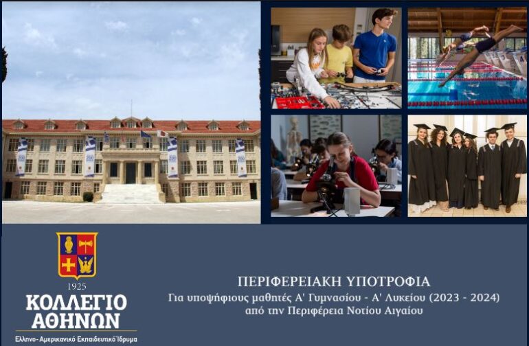 Υποτροφία για μαθητές που συνδυάζουν υψηλές ακαδημαϊκές επιδόσεις με οικονομική ανάγκη της οικογένειας έχει θεσπίσει, με τη συνεργασία της Περιφέρειας Νοτίου Αιγαίου, το Κολλέγιο Αθηνών.