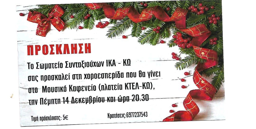 Στην χοροεσπερίδα που διοργανώνει στις 14 Δεκεμβρίου 2023 ημέρα Πέμπτη στις 8:30 στο