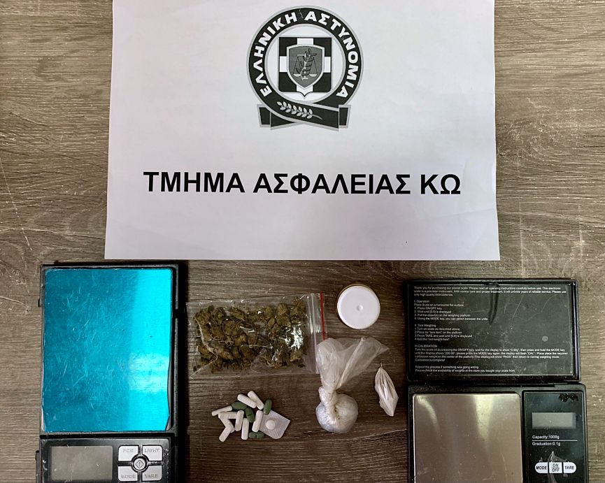 Την 26-01-2023 το μεσημέρι συνελήφθη στη Κω, από αστυνομικούς του Τμήματος Ασφαλείας Κω, 41χρονος ημεδαπός γιατί στο πλαίσιο αστυνομικής έρευνας βρέθηκαν στην κατοχή του και κατασχέθηκαν 6,1 γραμμ. ηρωίνη, 3,2 γραμμ. κάνναβη, 14 ναρκωτικά δισκία χωρίς ιατρική συνταγή και 2 ζυγαριές ακριβείας. (επισυνάπτεται φωτογραφία)