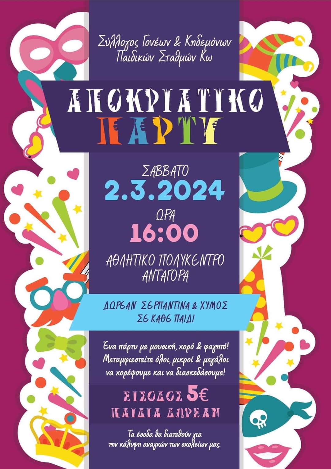 Home»ΡΟΗ ΕΙΔΗΣΕΩΝ»Σύλλογος Γονέων και Κηδεμόνων Παιδικών Σταθμών Κω: ΑΠΟΚΡΙΑΤΙΚΟ ΠΑΡΤΥ