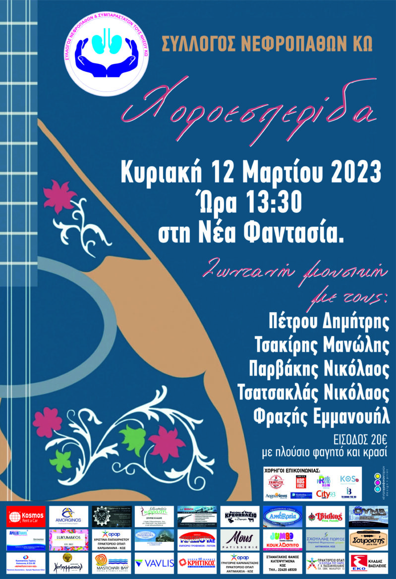 Share Facebook Twitter LinkedIn Pinterest Email Ο σύλλογος Νεφροπαθών Κω πρόκειται να κάνει την χοροεσπερίδα του την Κυριακή 12/3/23 στις 13:30 στη Νέα φαντασία Χοροεσπερίδα