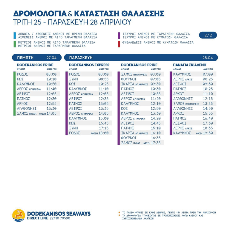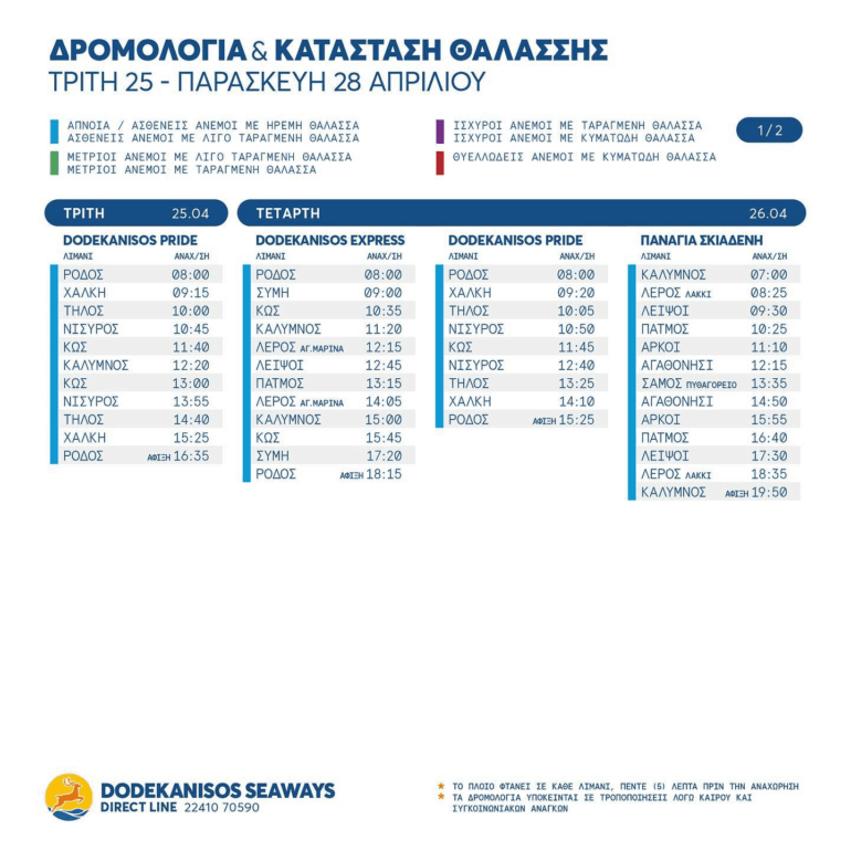 Share Facebook Twitter LinkedIn Pinterest Email Τα δρομολόγια των πλοίων της DODEKANISOS SEAWAYS από 25-28 Απριλίου 2023 Dodekanisos Seaways
