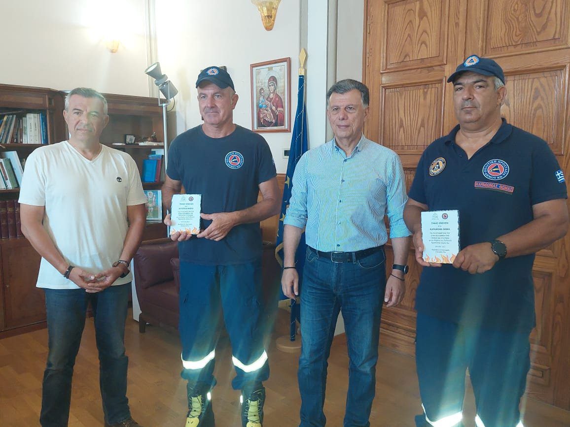 Share Facebook Twitter LinkedIn Pinterest Email Σήμερα το πρωί στο γραφείο Δημάρχου τιμήθηκαν από το Δήμαρχο Κω Θεοδόση Νικηταρά τα στελέχη της Πολιτικής Προστασίας του Δήμου Κω που συνέδραμαν στην κατάσβεση της καταστροφικής πυρκαγιάς στη γειτονική Ρόδο. Πολιτική προστασία Δήμου Κω