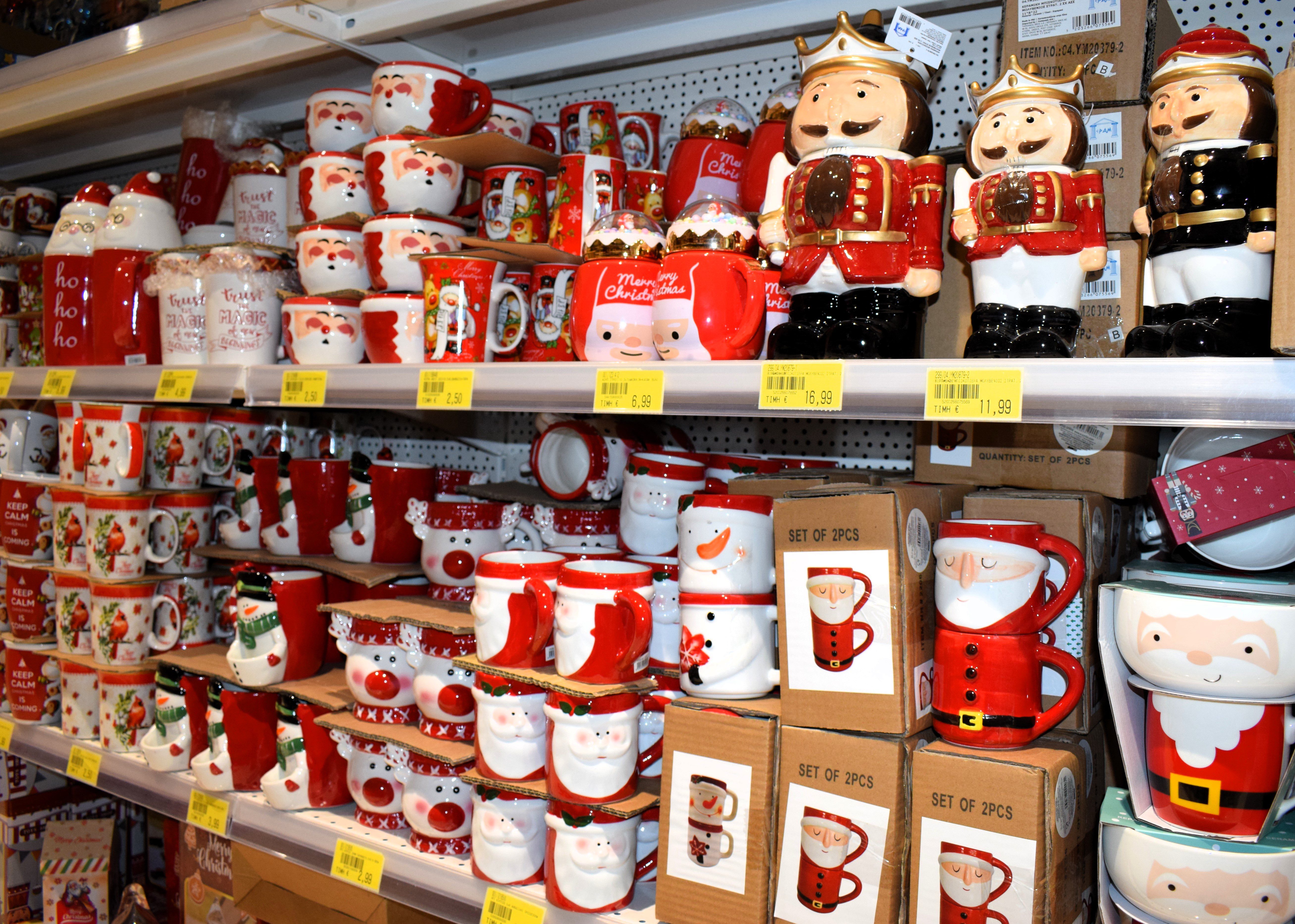 Στους χώρους του καταστήματος ανακαλύπτεις τη μεγαλύτερη ποικιλία σε τιμές που χαμηλότερες δεν υπάρχουν.. Θα βρείτε αμέτρητα σχέδια, χριστουγεννιάτικα στολίδια, χριστουγεννιάτικα δέντρα και είδη διακόσμησης, κούπες, πιατέλες και κεριά, φαναράκια, ξύλινα διακοσμητικά, τα οποία θα συνθέσουν το χριστουγεννιάτικο περιβάλλον των ονείρων σας. Στολίστε το σπίτι σας, κάντε τα πιο όμορφα δώρα στους αγαπημένους σας, αλλά και στον εαυτό σας, και ετοιμαστείτε να ζήσετε τη μαγεία των Χριστουγέννων μαζί με το πιο “χαρούμενο” κατάστημα της πόλης!