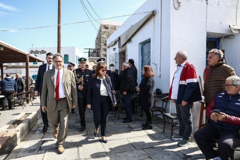 Την Πρόεδρο της Δημοκρατίας υποδέχθηκε συνόδευσε στο νησί ο Περιφερειάρχης Νοτίου Αιγαίου κ. Γιώργος Χατζημάρκος ο έπαρχος κ. Γιάννης Καμπανής ο δήμαρχος Νισύρου κ. Χριστοφής Κορωναίος.